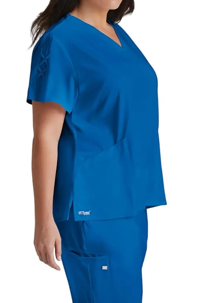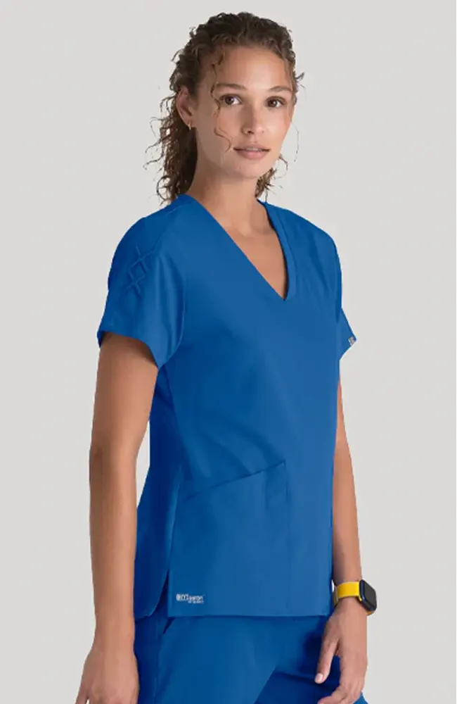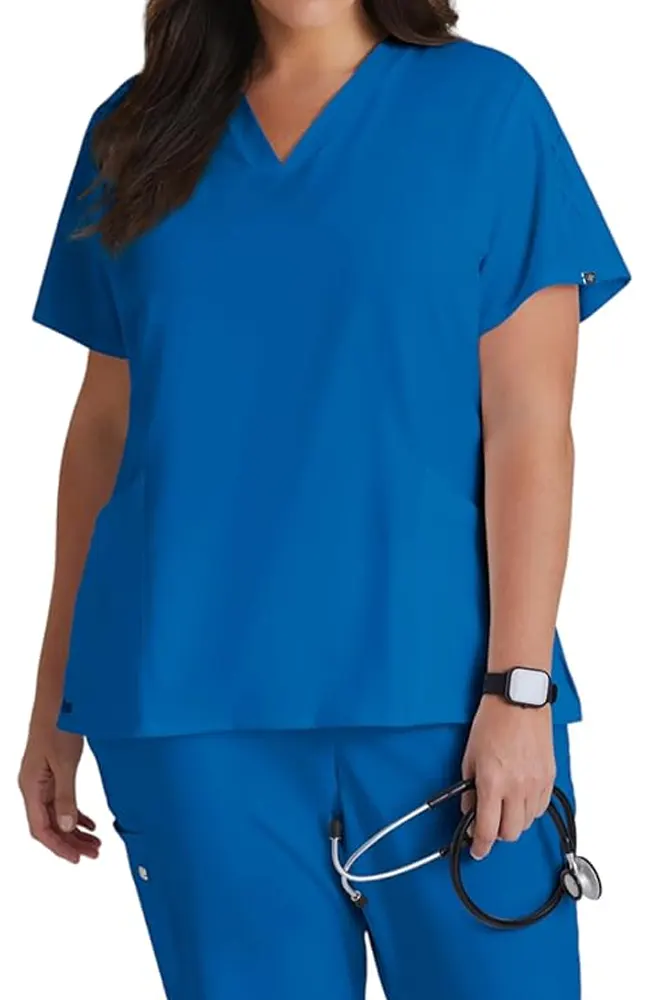 Filipina médica de la línea Grey’s Anatomy, confeccionada en tela ArcLux de lujo súper suave con elasticidad en 4 direcciones para máxima comodidad y movilidad. Su diseño moderno con cuello en V, detalles de cordones cruzados en las mangas y dobladillo posterior alto-redondeado aporta un toque elegante y distintivo, ideal para profesionales que buscan estilo y funcionalidad.
