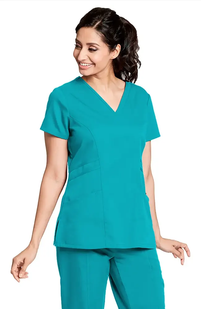Filipina médica con cuello en V y corte moderno, diseñada para brindar suavidad, elasticidad y libertad de movimiento durante toda la jornada. Su tela de alto rendimiento expulsa la humedad y cuenta con tratamiento antimanchas, ideal para profesionales que buscan comodidad y estilo.