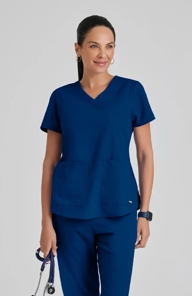 Por mucha presión que tengas, no notarás el sudor con esta camiseta médica clásica Grey’s Anatomy para mujer. Está confeccionada con un tejido que absorbe la humedad y es muy suave al tacto. Sus amplios bolsillos te permiten tener siempre a mano el teléfono y tus utensilios.