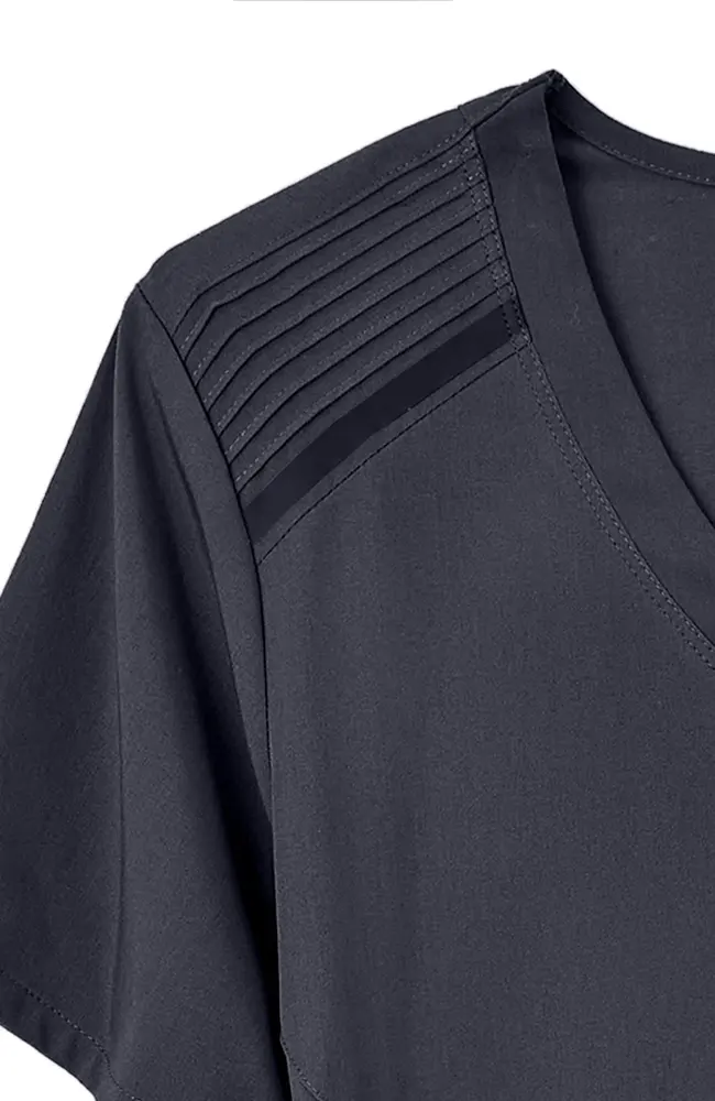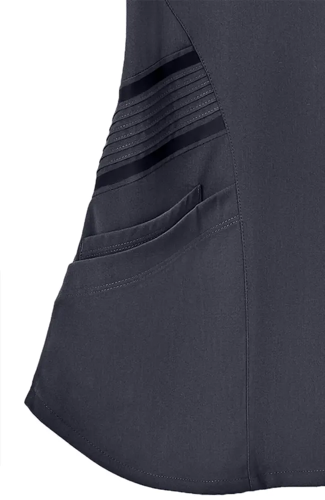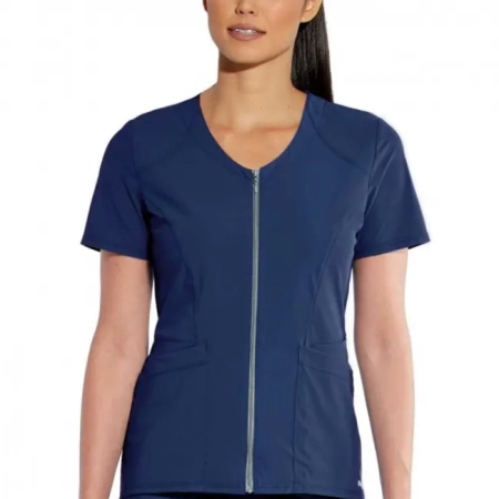 Filipina médica de la línea Grey’s Anatomy Impact, con un moderno diseño inspirado en el estilo “moto”, cuello en V y pinzas decorativas que aportan un look deportivo y elegante. Confeccionada en tela elástica bidireccional con tecnología antimanchas y de absorción de humedad, ofrece confort, libertad de movimiento y un ajuste favorecedor para toda la jornada laboral.