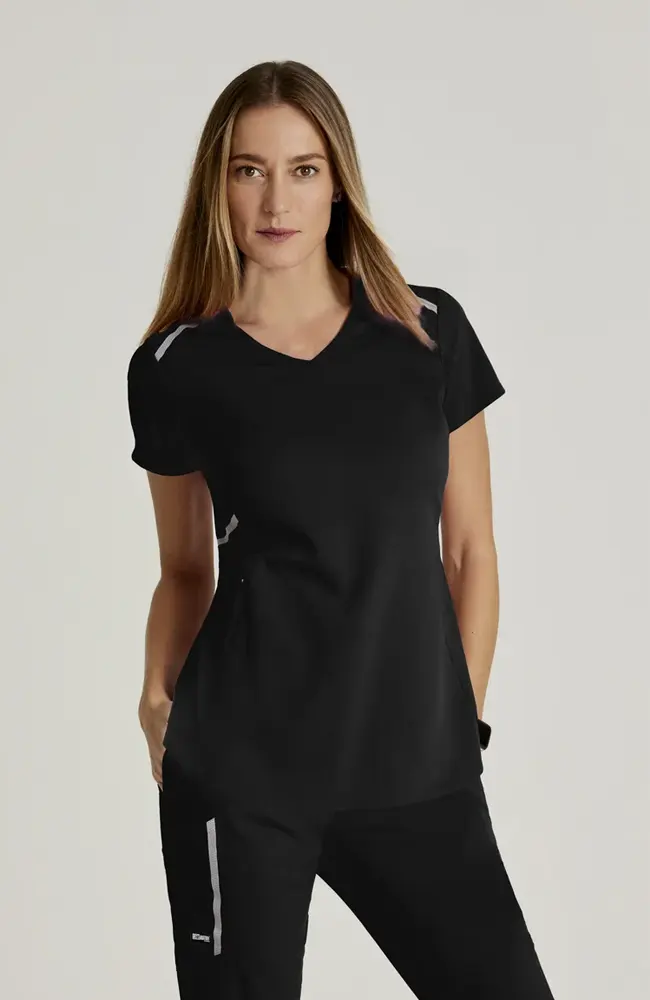Pertenece a la colección Grey’s Anatomy Impact, caracterizada por sus cortes modernos, detalles únicos y telas de alto rendimiento, ideales para profesionales que buscan comodidad y estilo en un mismo uniforme.