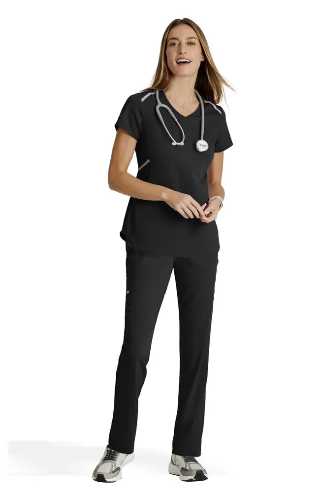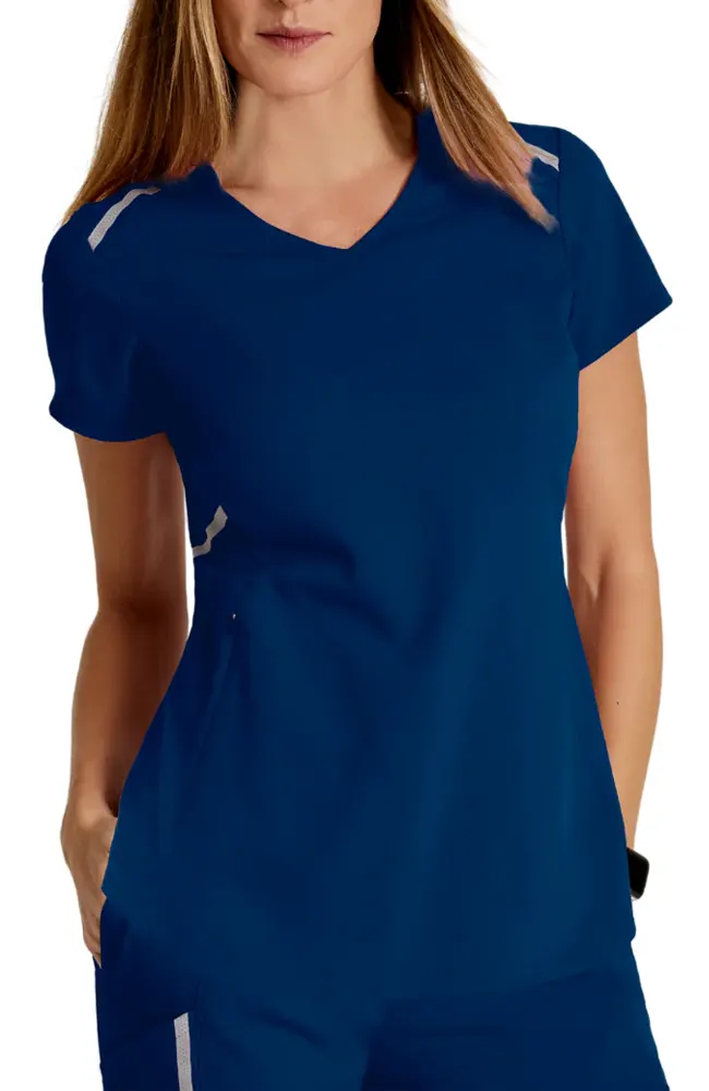 Filipina médica de la colección Grey’s Anatomy Impact, diseñada con un moderno cuello en V con detalle de cinta perforada y costuras de rendimiento que realzan la silueta. Confeccionada en tela elástica bidireccional con tecnología antimanchas y de absorción de humedad, combina estilo, comodidad y funcionalidad para el día a día en el entorno médico.