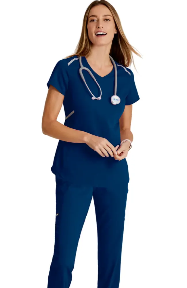 Pertenece a la colección Grey’s Anatomy Impact, reconocida por su diseño contemporáneo, detalles distintivos y telas de alto rendimiento que garantizan confort y durabilidad en cada turno.